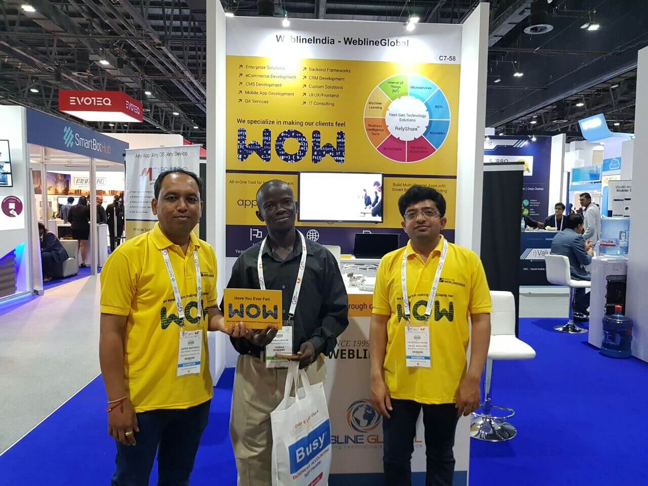 Day 03 followed the same pattern of a steady flow of visitors from different countries. Most of the delegates were intrigued by the WOW theme of WeblineIndia theme and wanted to know about how WeblineIndia can help them to get the right advise as well as the right services for their software development requirements. Members of Team WeblineIndia happily took them through the wide gamut of services offered by WeblineIndia and also helped them by addressing their specific queries. One such visitor, Mr James A. Hampton from South Africa was very much interested in learning more about our Next-Gen technology development services. He was particularly impressed by the advanced services on Next-Gen Technologies like Internet of Things, Machine Learning, BOTs, Serverless Architecture, Microservices, Blockchain, Business Intelligence Solutions and Wearable app development. He even took our ‘Walk Through Demonstration’ of some of our successfully completed projects. By the time he was through, he had no doubts that he has finally found out the kind of trustworthy and highly skilled service providing agency, which he had been looking for since long.
