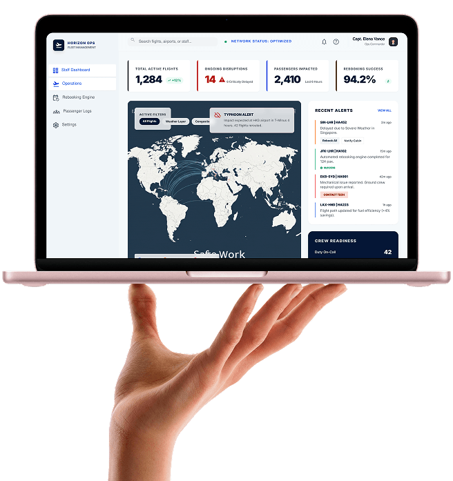 To turn flight disruptions into smooth, manageable workflows, we delivered a tightly integrated and highly responsive airline software solution equipped with essential and enhanced capabilities: